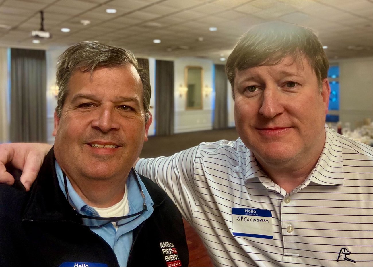 America First Energy Project Louisiana Executive Director Jeff Arnold visited with Louisiana Public Service Commissioner Jean-Paul Coussan during the Acadiana Energy Lunch at the Petroleum Club of Lafayette!