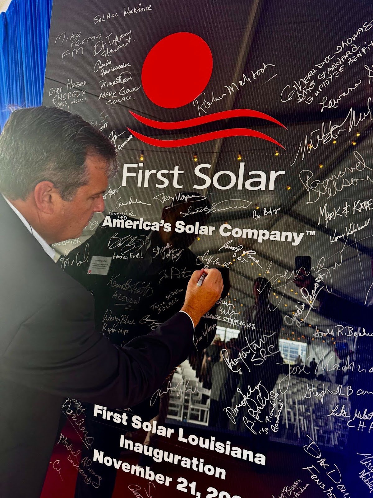 Energy Right and America First Energy Project Louisiana attended the First Solar Louisiana manufacturing Inauguration, a new milestone for America manufacturing and solar productivity!